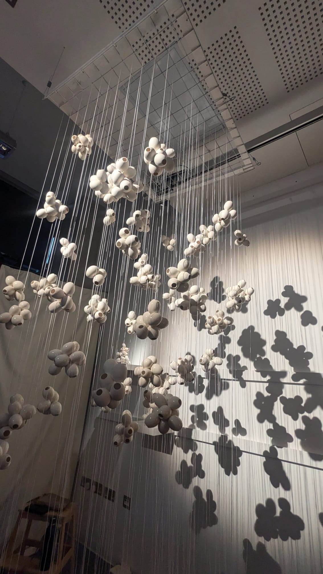 My current project, Parrhesia, explores the moral duty to speak truth, even at personal cost. The installation reflects on the missed possibility of motherhood and the often-unspoken losses carried within women’s bodies. Central to the work are 400–500 suspended porcelain eggs, representing the average number released during a woman’s fertile lifetime. Floating and delicate, they cast shifting shadows that register absence—marking potential that is unfulfilled and spent, held between presence and disappearance.